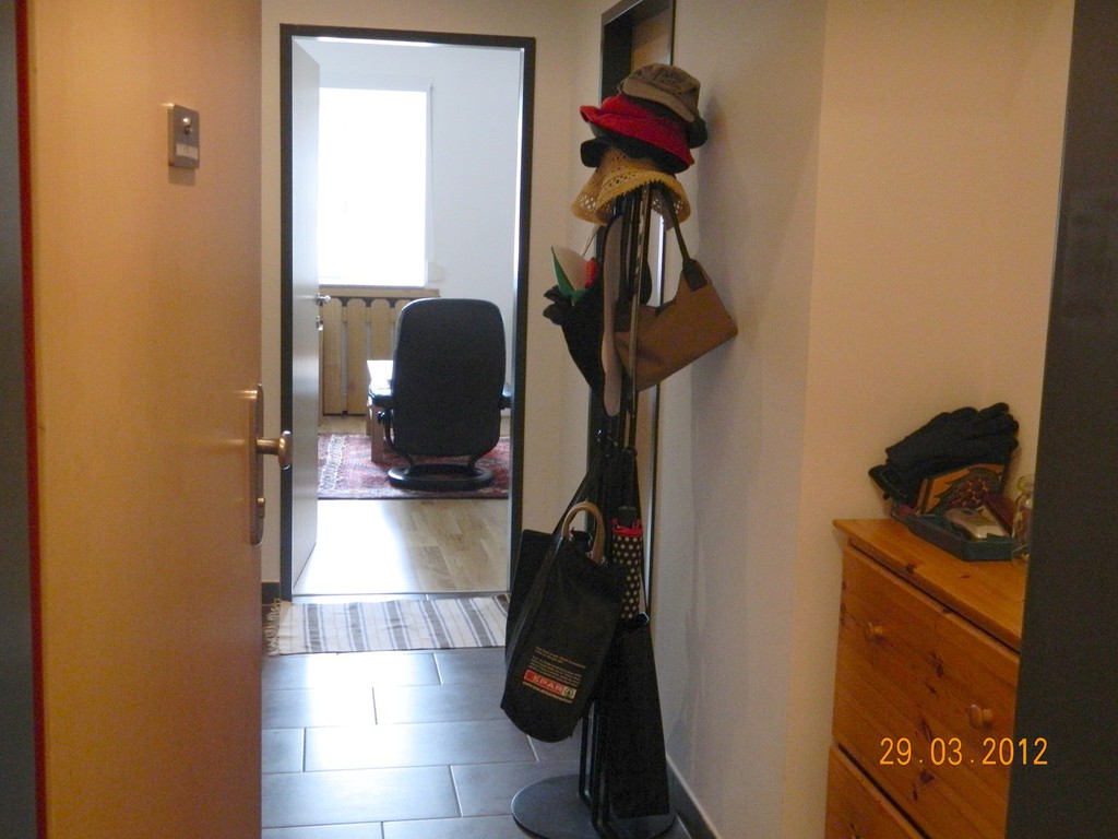integrierter Küche, eigener Abstellraum, Wohnraum mit Sat- & Telefonan- schluß. Fliesenboden im Eingangs- & Küchenbereich und natürlich im Badezimmer. Eichenparkett im Schlafzimmer
